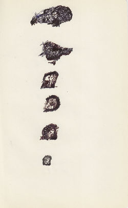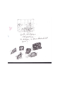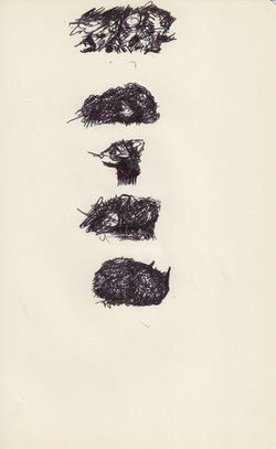 Mes dessins d'humeurs sont comme des dessins de téléphone. C'est une écriture automatique faisant émerger le plus souvent des pictogrammes en colonnes. Des traits, des gribouillis ou quelques virgules générent analogies ou associations d'idées.